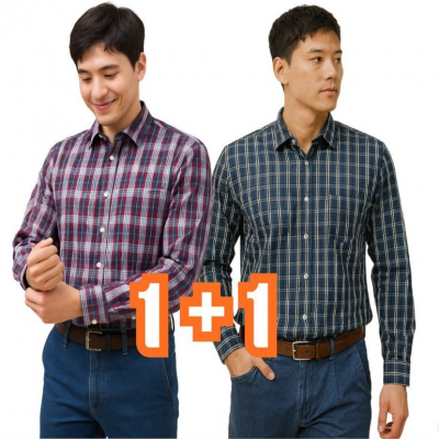 [1+1특가] 몰앤모어 남자 봄가을 여름 체크 체크무늬 작업 남방 셔츠 긴팔